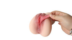 Male sex toys with lifelike internal structures: This male masturbator is designed with dual channels for vaginal and anal simulation, featuring a realistic exterior and an intricately textured interior with countless bumps, grooves, and folds. It offers a lifelike look and an incredibly realistic feel, both inside and out