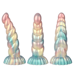 Stunning Twisted Design: The Twisted Rainbow Electric Dildo features a uniquely sculpted design with a series of rounded, smooth, and progressively larger shapes, creating an enticing visual appeal. The vibrant rainbow gradient, transitioning from soft pink to blue, adds a mesmerizing and playful touch to this striking toy.